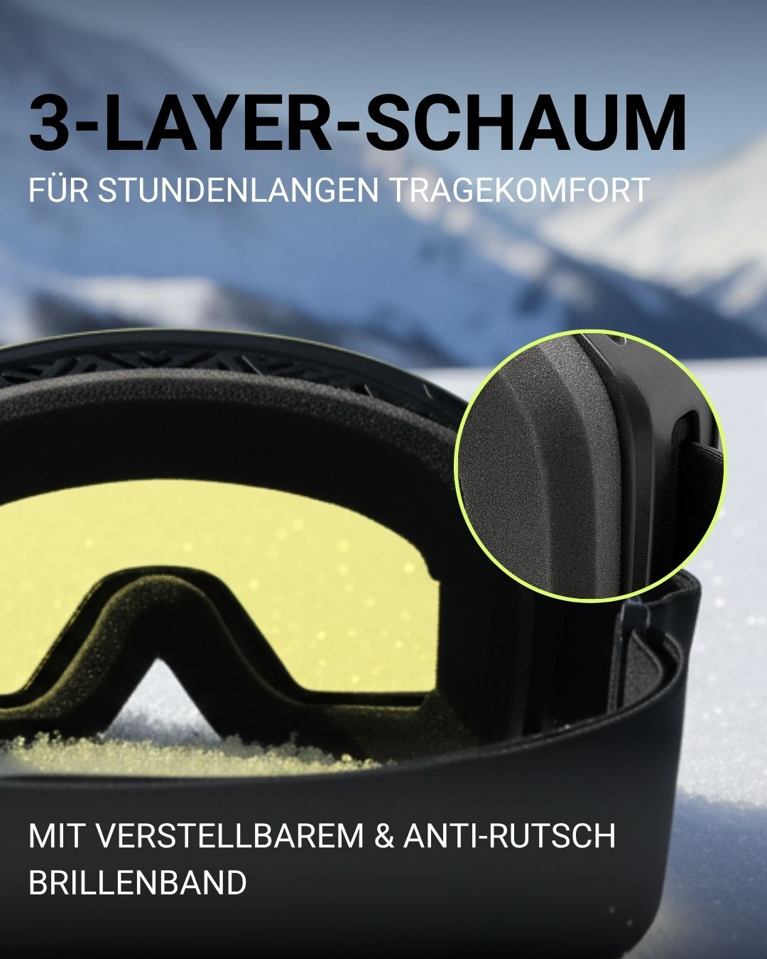 Der dreilagige High-Comfort-Schaumstoff passt sich deinem Gesicht perfekt an – für optimalen Halt, ohne Druckstellen. Auch bei langen Skitagen bleibt die Brille super angenehm zu tragen. Passt auf jedes Gesicht, egal ob Mann oder Frau.