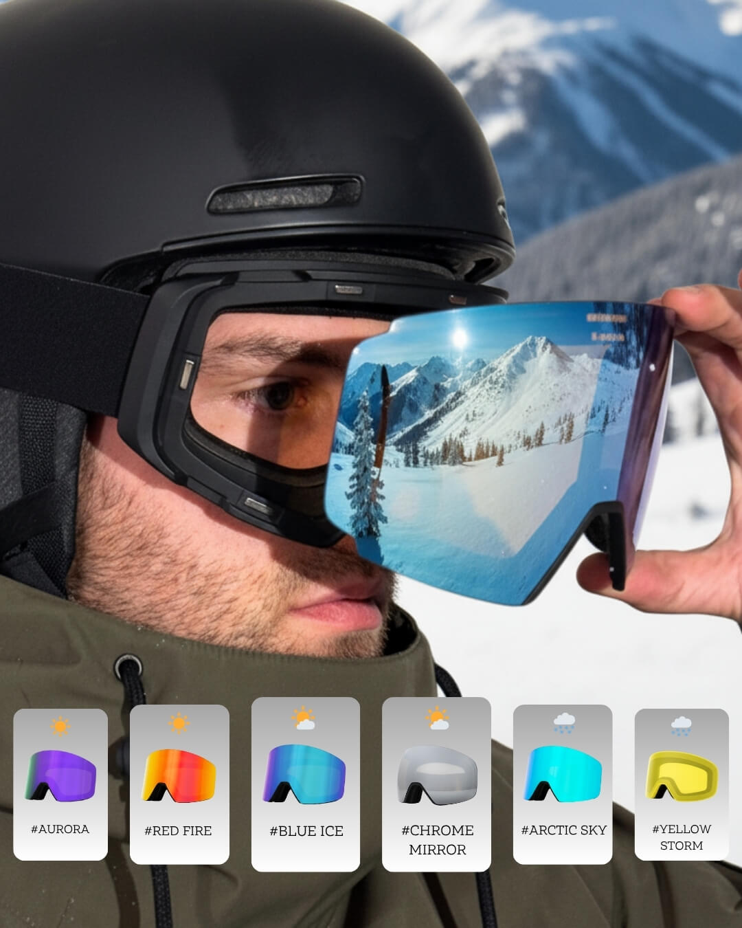 Sammle nicht nur Pistenkilometer, sondern auch Komplimente. Mit den 6 magnetischen Wechselvisieren, hast du immer den passenden Style zu deinem Outfit in der Jackentasche - polarisiert und mit UV400.